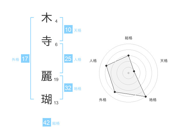 木寺 麗瑚さんの総格は42画の3点!