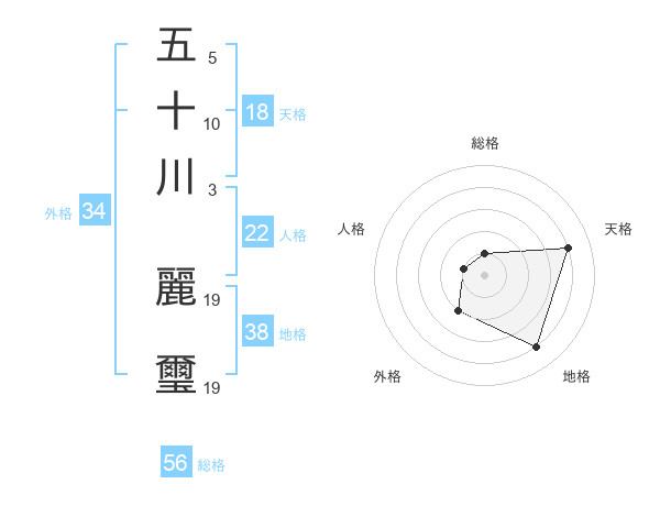 五十川 麗璽さんを姓名の画数から五運を鑑定