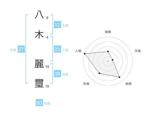 八木 麗璽さんを姓名の画数から五運を鑑定