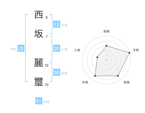 西坂 麗璽さんを姓名の画数から五運を鑑定