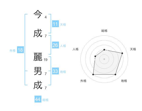 今成 麗男成さんを姓名の画数から五運を鑑定