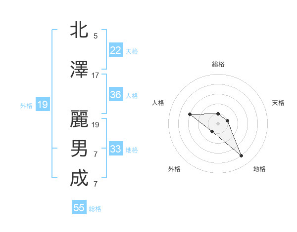 北澤 麗男成さんを姓名の画数から五運を鑑定