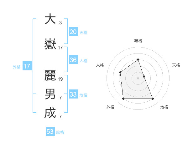大嶽 麗男成さんを姓名の画数から五運を鑑定