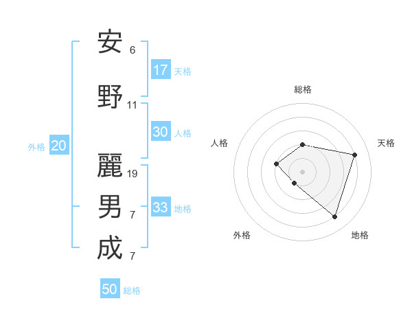 安野 麗男成さんの総格は50画の2点!