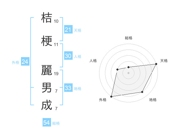 桔梗 麗男成さんを姓名の画数から五運を鑑定
