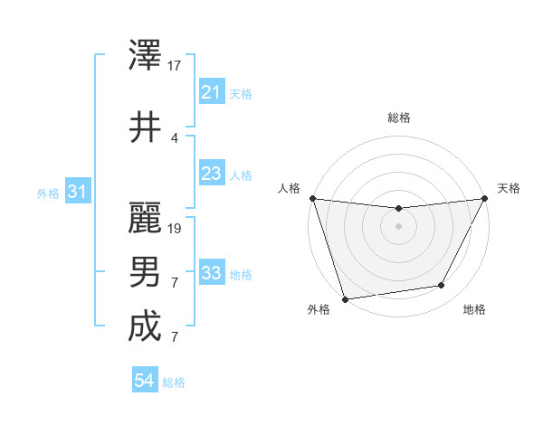 澤井 麗男成さんを姓名の画数から五運を鑑定