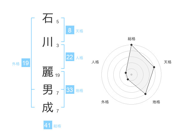 石川 麗男成さんの総格は41画の5点