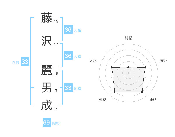 藤沢 麗男成さんを姓名の画数から五運を鑑定