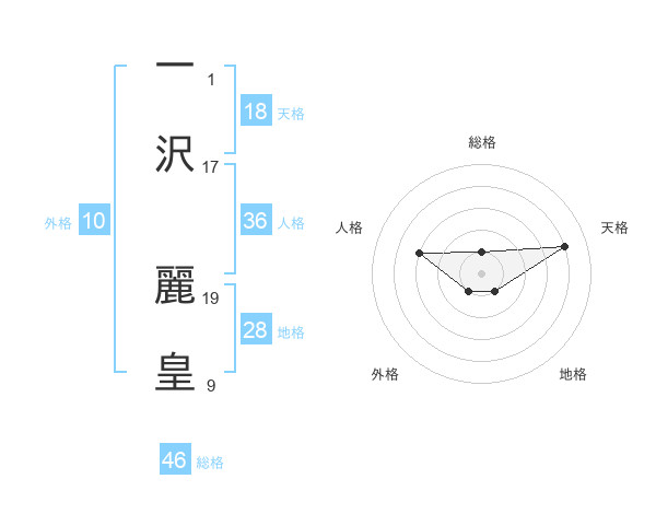 一沢 麗皇さんの総格は46画の1点!