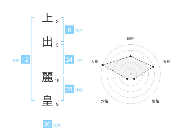 上出 麗皇さんの天格は8画の4点!