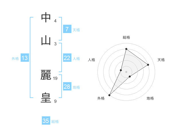 中山 麗皇さんを姓名の画数から五運を鑑定