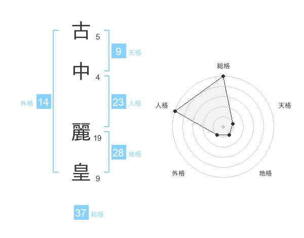 古中 麗皇さんの総格は37画の5点!