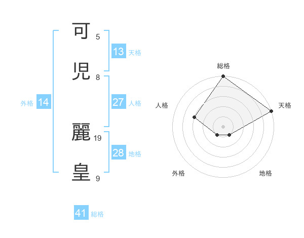 可児 麗皇さんを姓名の画数から五運を鑑定