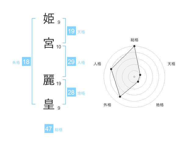 姫宮 麗皇さんの総格は47画の5点!
