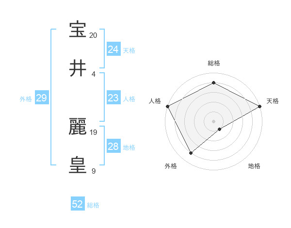 宝井 麗皇さんを姓名の画数から五運を鑑定