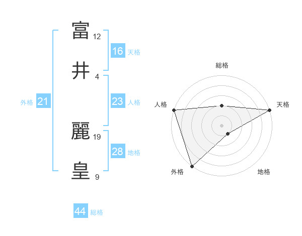 富井 麗皇さんの総格は44画の2点!