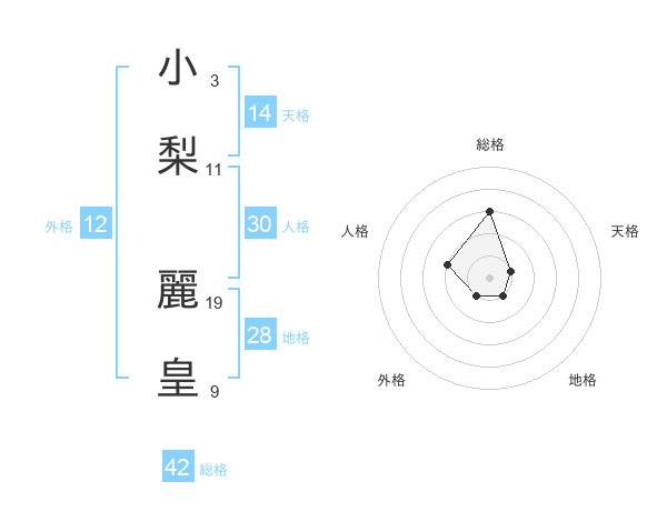 小梨 麗皇さんを姓名の画数から五運を鑑定
