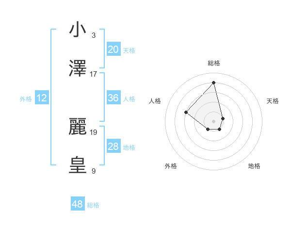 小澤 麗皇さんを姓名の画数から五運を鑑定