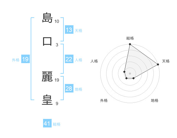 島口 麗皇さんの総格は41画の5点!