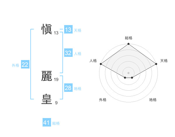 愼 麗皇さんを姓名の画数から五運を鑑定