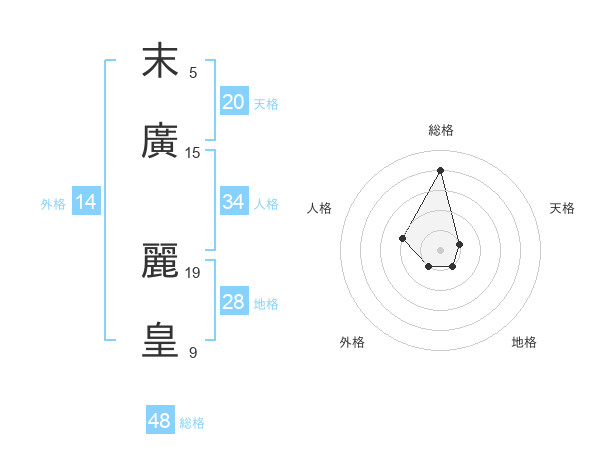 末廣 麗皇さんを姓名の画数から五運を鑑定