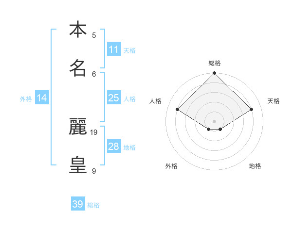本名 麗皇さんを姓名の画数から五運を鑑定