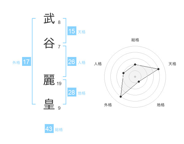 武谷 麗皇さんを姓名の画数から五運を鑑定