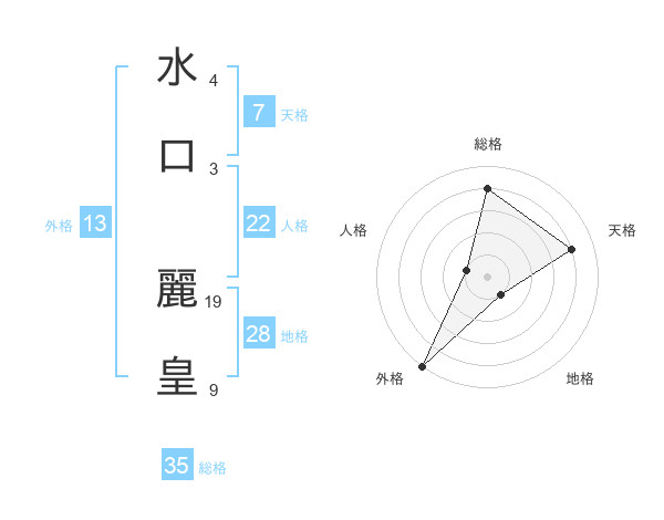 水口 麗皇さんの総格は35画の4点!