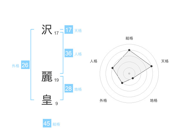沢 麗皇さんを姓名の画数から五運を鑑定