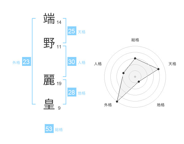 端野 麗皇さんを姓名の画数から五運を鑑定