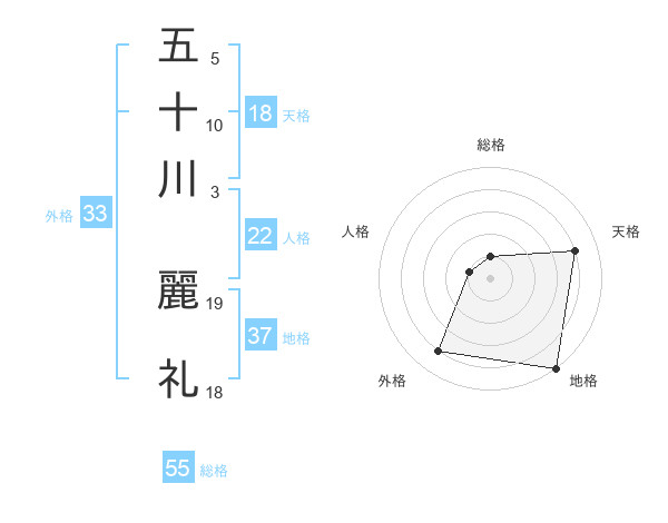 五十川 麗礼さんを姓名の画数から五運を鑑定