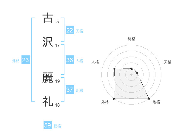 古沢 麗礼さんの外格は23画の5点!
