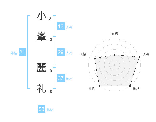 小峯 麗礼さんを姓名の画数から五運を鑑定