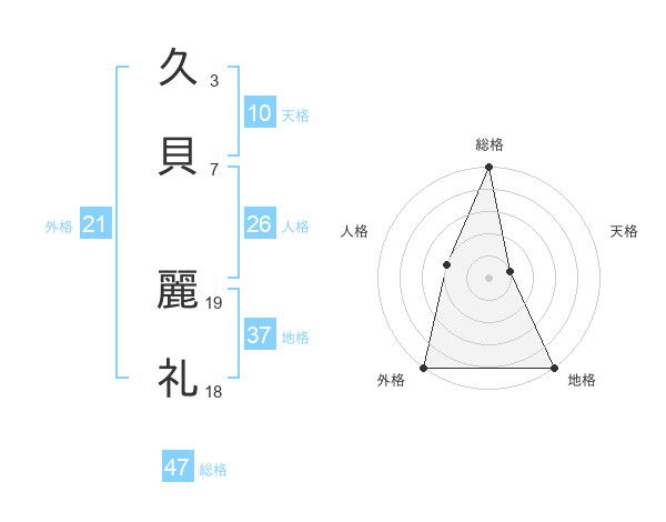 久貝 麗礼さんを姓名の画数から五運を鑑定