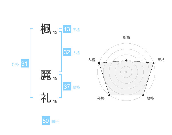 楓 麗礼さんの天格は13画の5点!