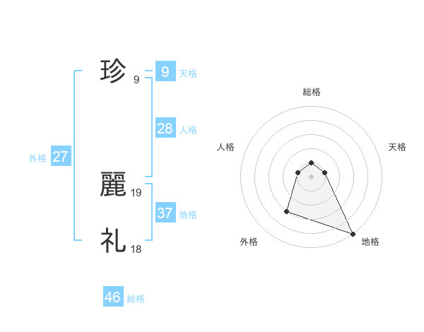 珍 麗礼さんを姓名の画数から五運を鑑定