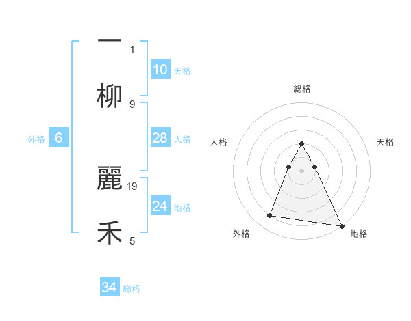 一柳 麗禾さんを姓名の画数から五運を鑑定