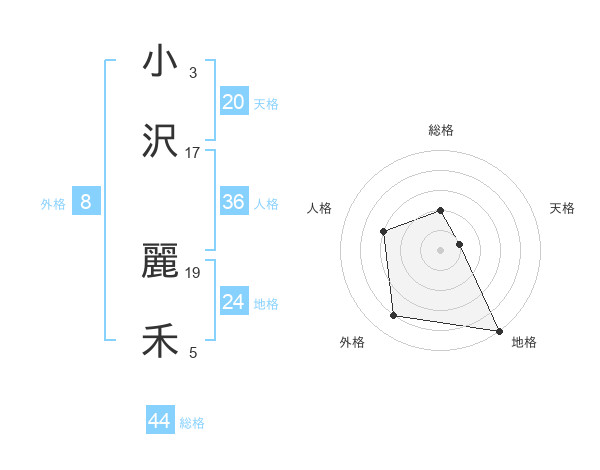 小沢 麗禾さんを姓名の画数から五運を鑑定