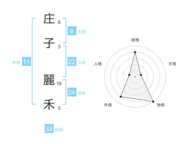 庄子 麗禾さんを姓名の画数から五運を鑑定