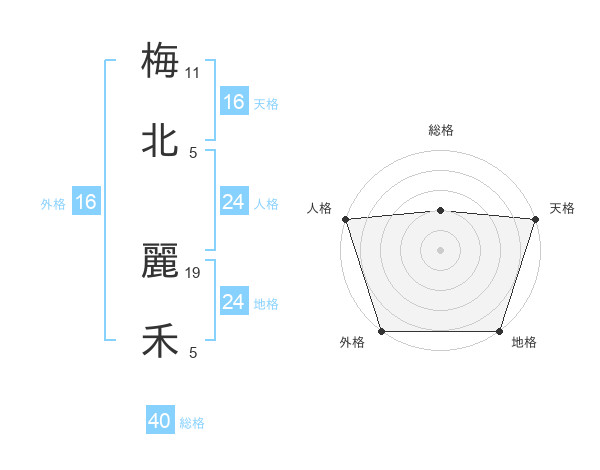 梅北 麗禾さんの総格は40画の2点!