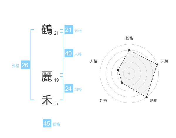 鶴 麗禾さんを姓名の画数から五運を鑑定
