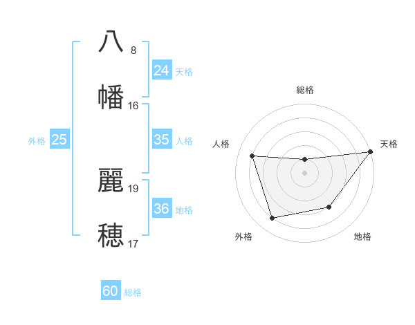 八幡 麗穂さんを姓名の画数から五運を鑑定