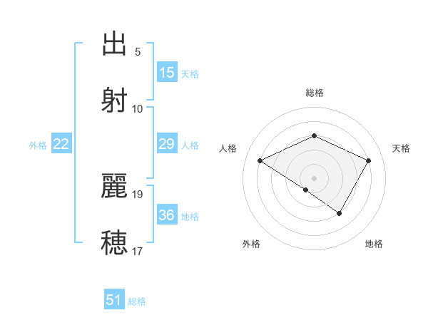 出射 麗穂さんを姓名の画数から五運を鑑定