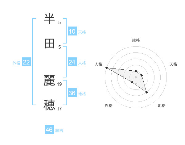 半田 麗穂さんを姓名の画数から五運を鑑定