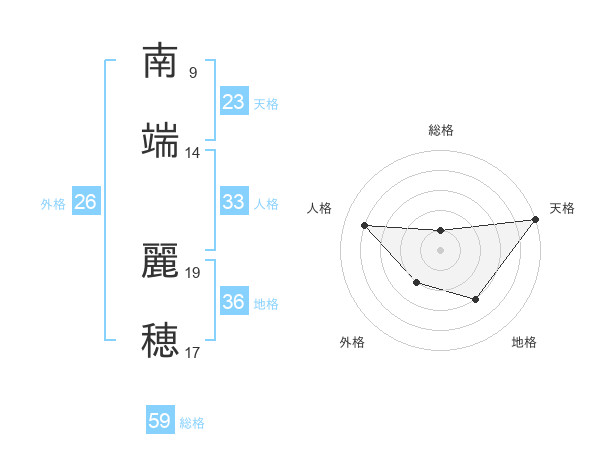 南端 麗穂さんを姓名の画数から五運を鑑定