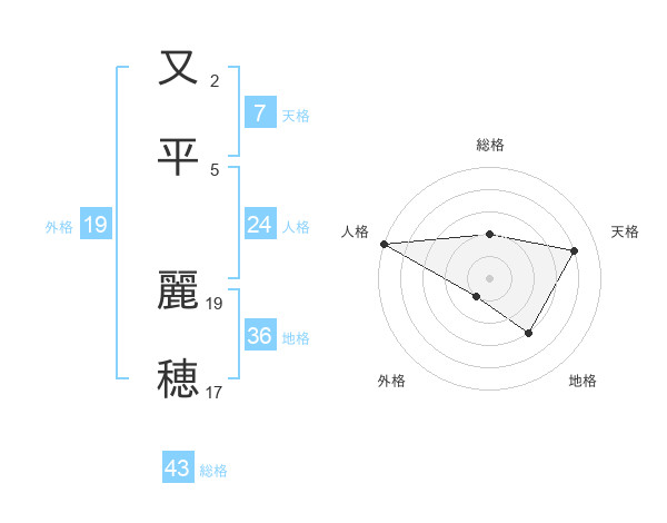 又平 麗穂さんを姓名の画数から五運を鑑定