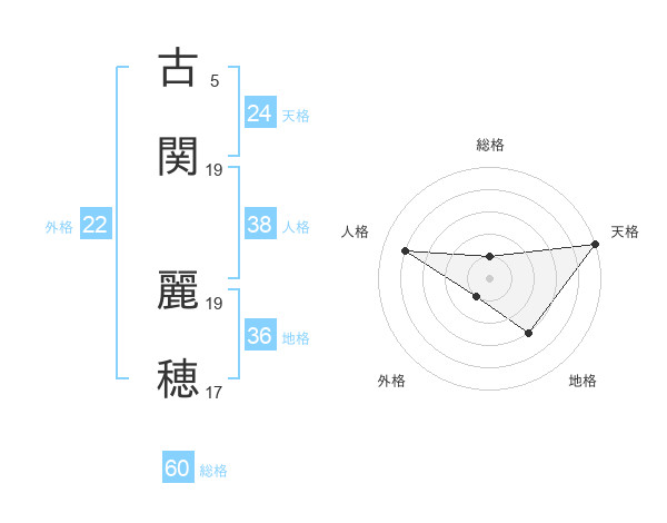 古関 麗穂さんの総格は60画の1点!