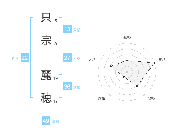 只宗 麗穂さんの天格は13画の5点!