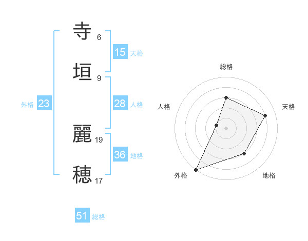 寺垣 麗穂さんを姓名の画数から五運を鑑定