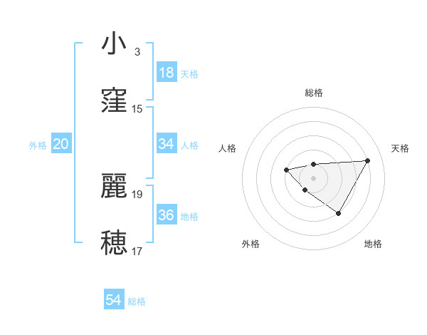 小窪 麗穂さんの外格は20画の1点!
